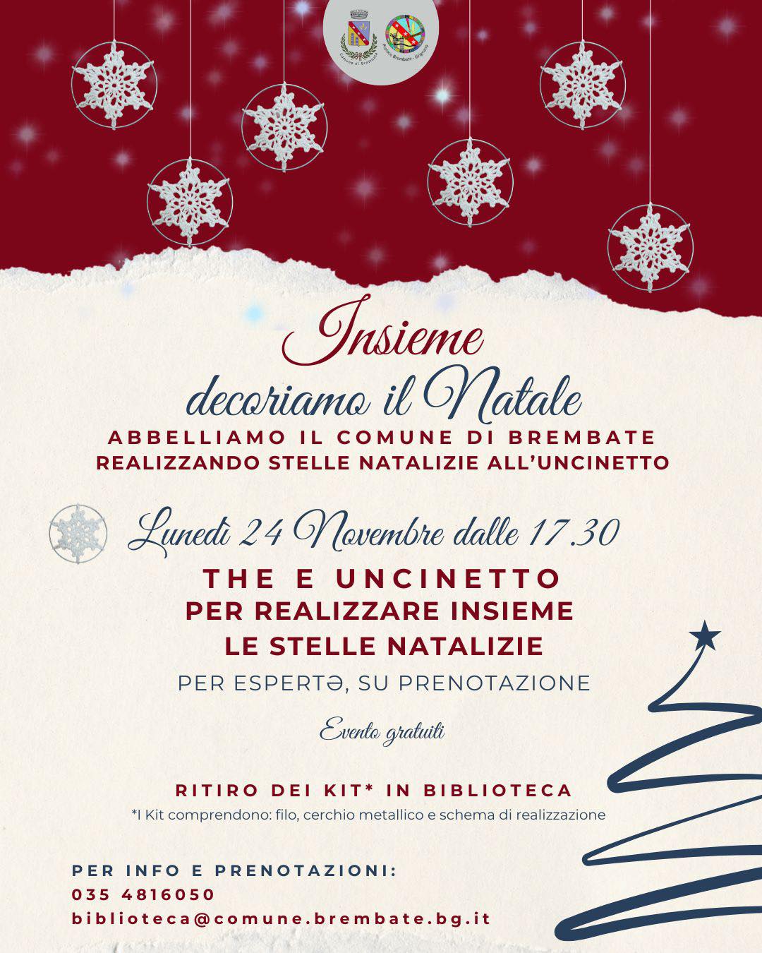 un pomeriggio da passare insieme per realizzare le stelle all'uncinetto che abbelliranno le vie di Brembate